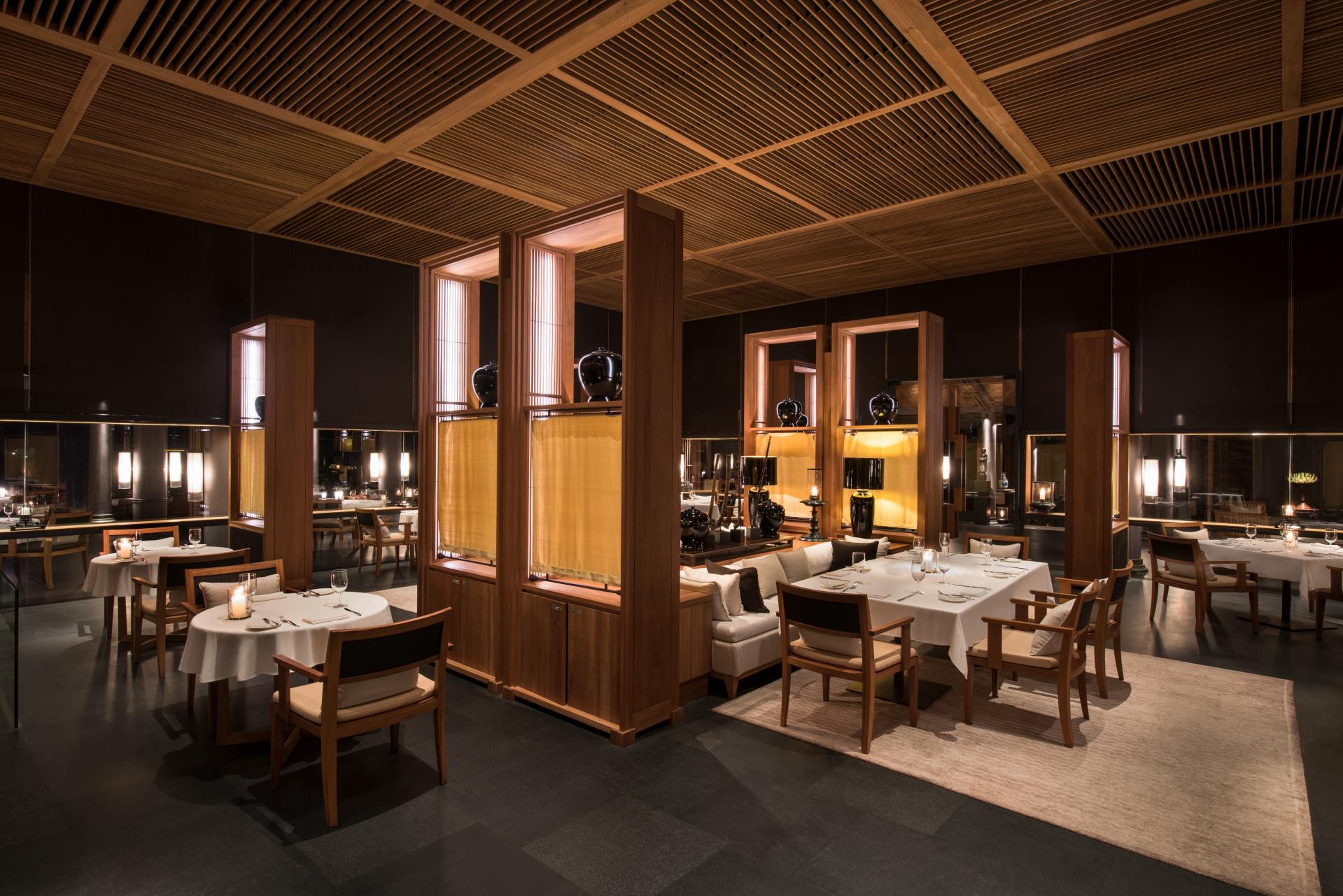 Bên cạnh những dịch vụ như về sức khỏe hay vui chơi thì ăn uống là không thể thiết đối với mỗi người. Nhà hàng ở Amanoi chuyên cung cấp đầy đủ các đồ ăn và đồ uống từ Âu đến Á, nhằm mang đến đầy đủ nhu cầu của thực khách. Phong cách thiết kế của nhà hàng ấm cúng.