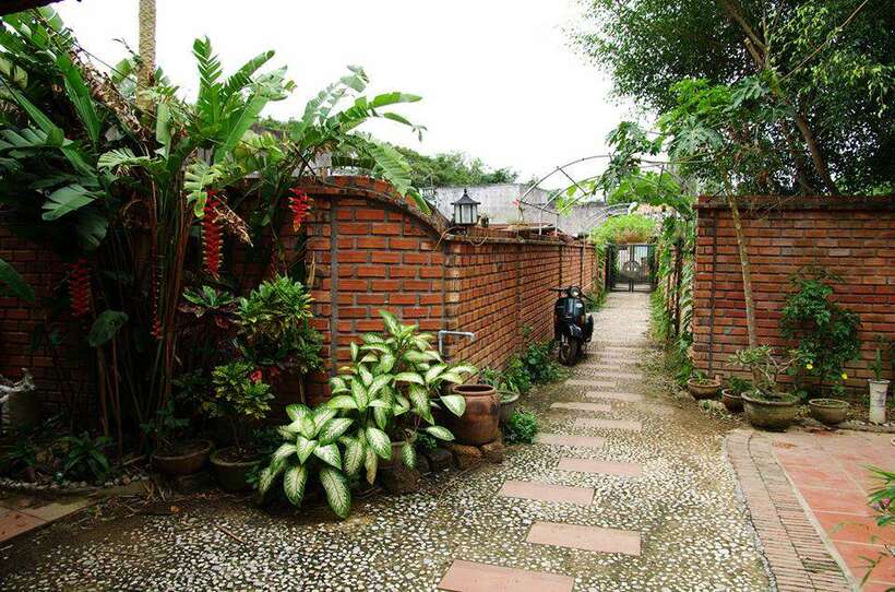 Chỉ cần bước chân qua cánh cổng thôi, chắc hẳn du khách nào cũng sẽ thấy ấn tượng trước những bức tường gạch đỏ được xây xung quanh, đi kèm với đó là các loại cây, loại hoa thơm mát.