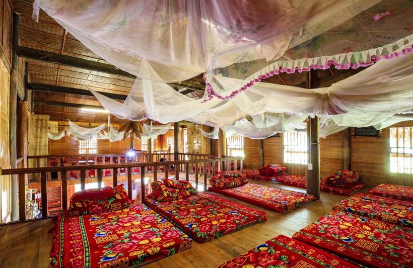 Toàn bộ homestay đều được lát bằng gỗ, vừa thông thoáng, mát mẻ nhưng cũng lại vừa đậm chất dân dã, phù hợp với lối sống sinh hoạt của đồng bào dân tộc.