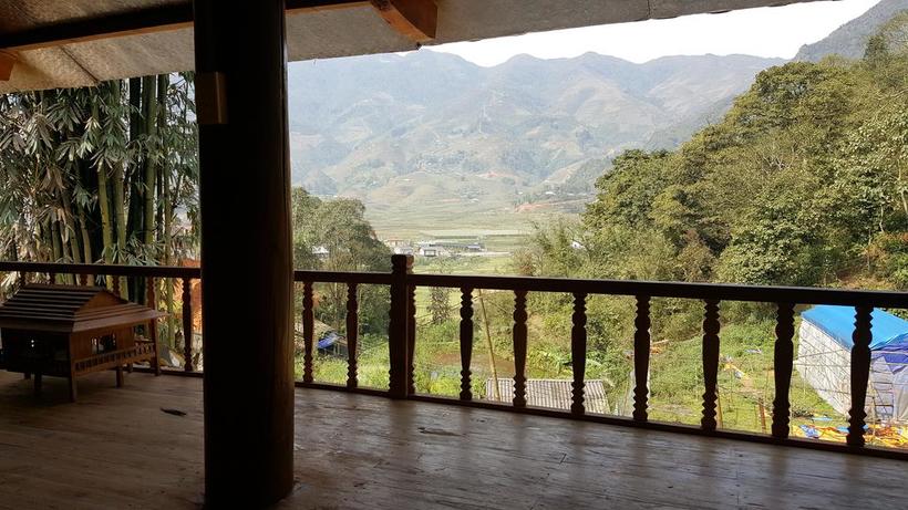 Từ ban công hành lang, bạn đã có thể chiêm ngưỡng toàn bộ khung cảnh thung lũng Tả Van