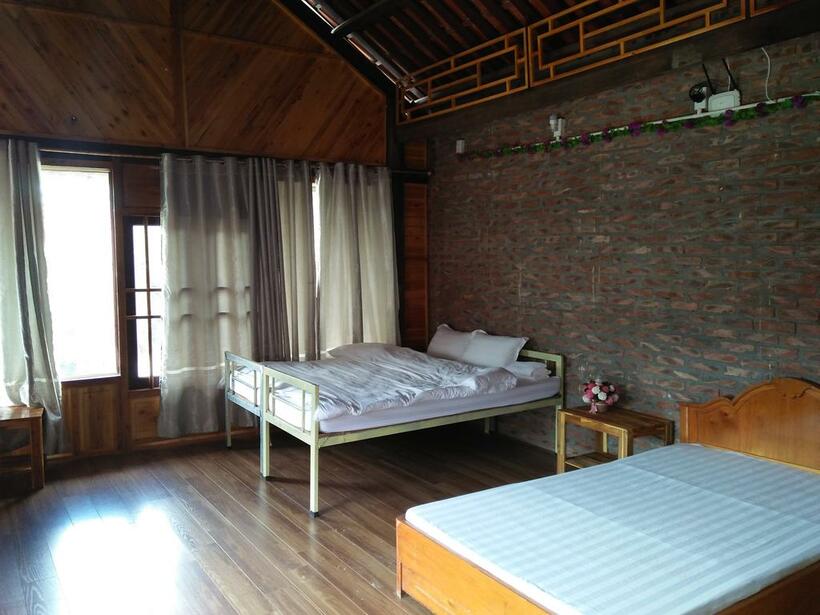Homestay này có đủ phòng đơn, phòng đôi, giường queen và cả phòng ngủ tập thể dành cho mọi du khách. Ở ngay ban công tầng 2 của homestay ở Sapa Lolo, du khách hoàn toàn có thể nằm thư giãn trên chiếc ghế dài bằng tre, ngắm nhìn những rặng hoa đào xinh xắn và hình ảnh thửa ruộng bậc thang xa xa, một nét đặc trưng bình yên mà chỉ riêng Sapa mới có.